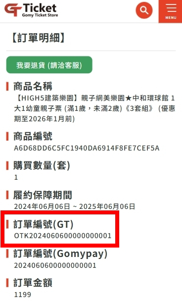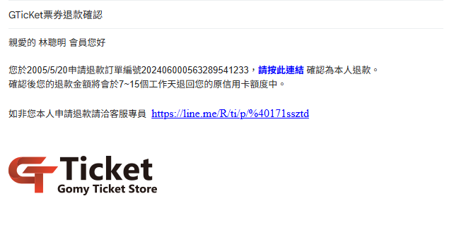 一、發行人資訊 發行人名稱:台灣萬事達金流股份有限公司 統一編號:80013554 實收資本額:66,292,500 地址:台北市中正區林森南路4號6樓之1 代表人姓名:胡世均 二、消費者服務資訊 消費申訴(客服)專線:02-2428-6860 三、信託(履約)保障機制 本公司發行之票券,已全額交付臺灣中小企業銀行信託專戶信託保管,票券履約期間為一年,消費者於履約保障期間內,皆可依票券記載事項、優惠價格、服務(商品)內容進行兌換。 如超過履約保障期間,雖銀行已不負保障責任,發行人/供應商仍必須履行票券記載事項、優惠價格、服務(商品)內容給予消費者兌換。 四、退款 於未核銷使用之票券記載金額永久有效,消費者得依原票券購買金額 申請全額100%退款,即發行人/供應商不收取退款手續費。 申請退款申請程序如下: Step1:登入會員專區 https://ticket.gomypay.asia/login?event=my Step2:複製訂單編號(GT) Step3:加GomyTicket官方LINE帳號好友 https://line.me/R/ti/p/%40171ssztd,並提供您的票券訂單編號(GT)。 註:請無須提供其他電子郵件信箱給客服人員,客服人員將會依照您原登記的電子信箱通知您確認退款。 Step4:客服人員確認無誤後將寄發退貨申請確認電子郵件至您的會員電子信箱。 Step5:請收取電子郵件後點選退款確認,您的退款金額將會於7~15個工作天退回您的原信用卡額度中。 五、資本額證明 最新變更事項登記表